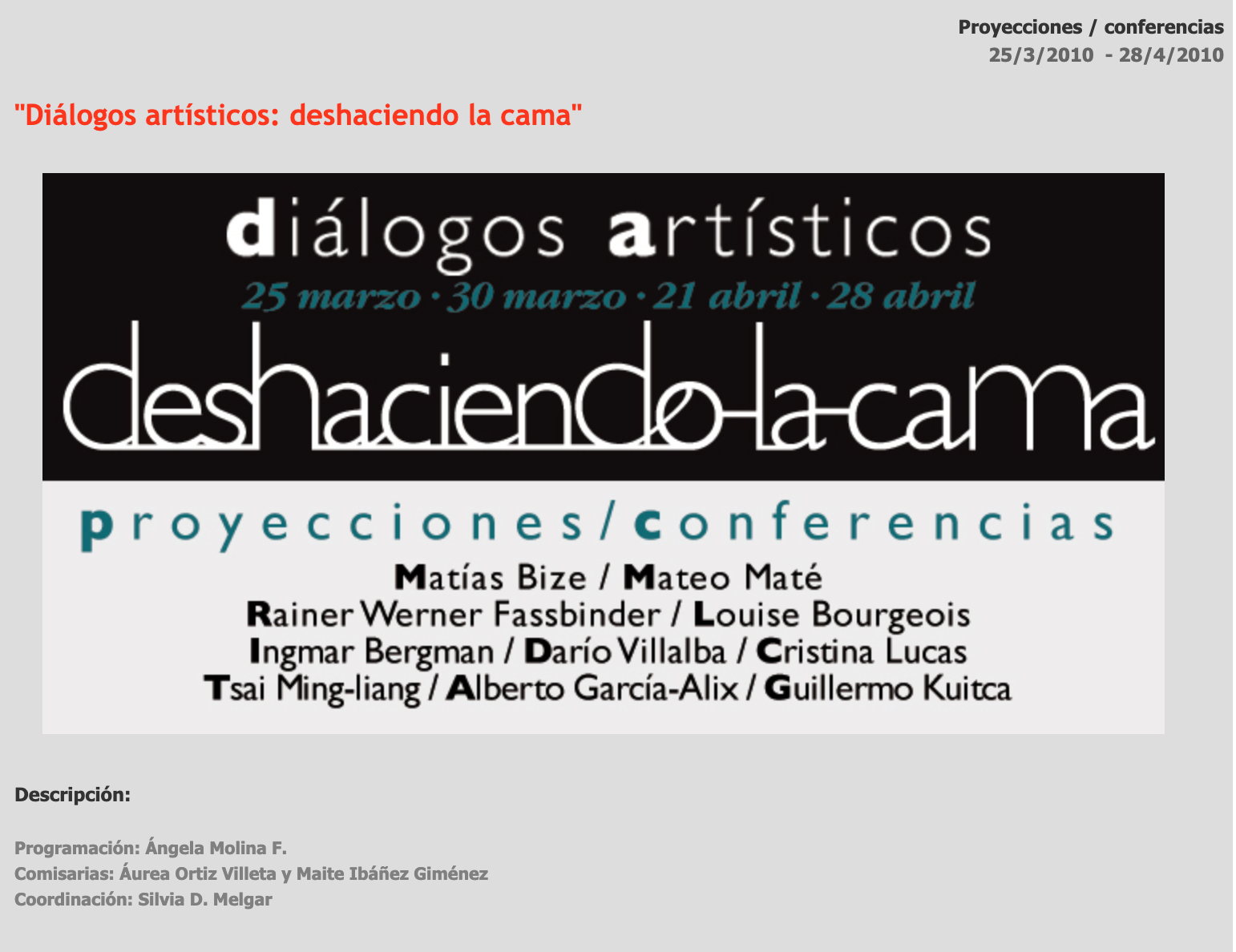 Artistic Dialogues: Deshaciendo la cama